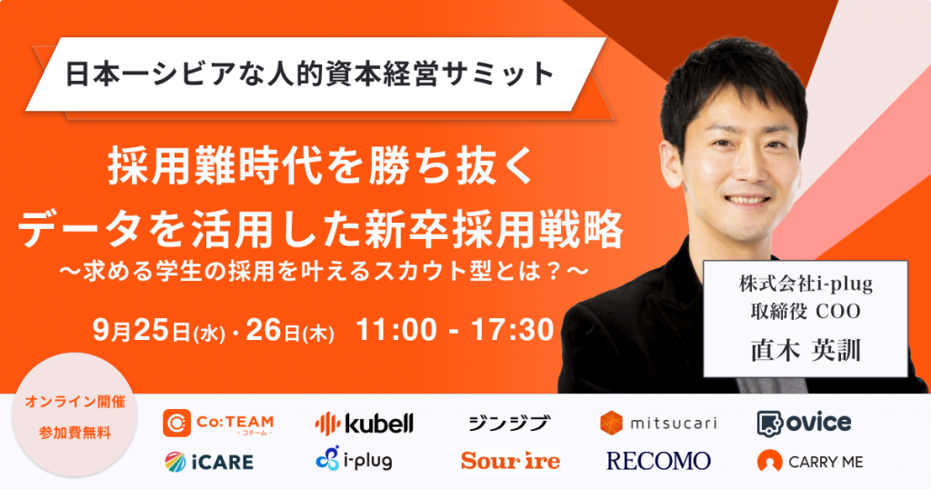 当社取締役 COO 直木 英訓が9月25日・26日開催の「日本一シビアな人的資本経営サミット」に登壇します