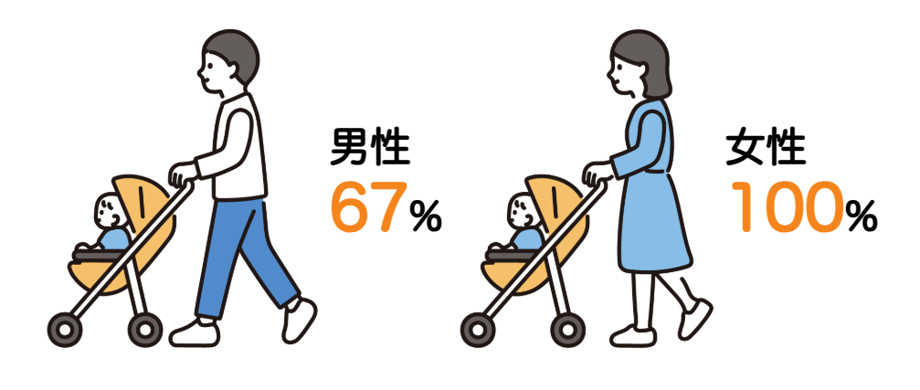 厚生労働省が発表した「令和6年度雇用均等基本調査」では、国内の女性育児休業取得率は86.6%、男性は40.5%でした。一方、i-plugの2025年度育休産休取得率は、女性が100%、男性が67%であり、男女ともに国内の平均よりも取得率が高いです。