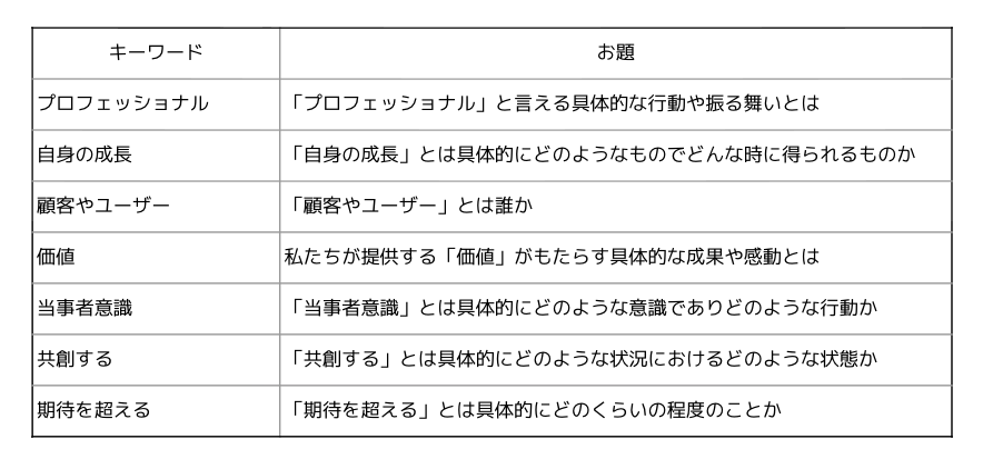 ・個々人がプロフェッショナルとして成長し続け、会社の提供価値を高めていくこと