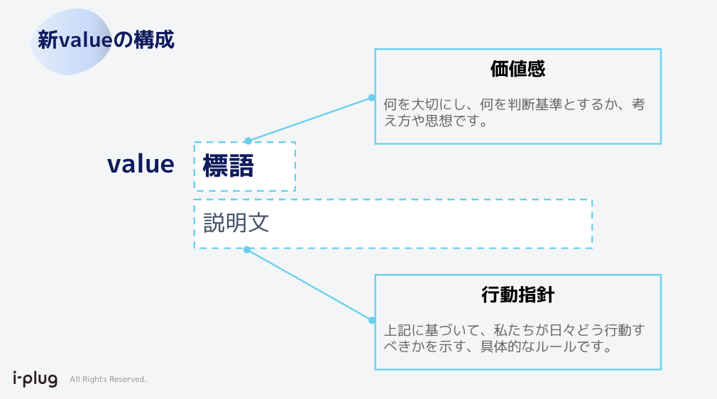 新Valueは、10月3日に開催された「i-plugグループ 2025年度下期キックオフ」で全社員に発表されました。今回新たに策定されたValueは5つです。
