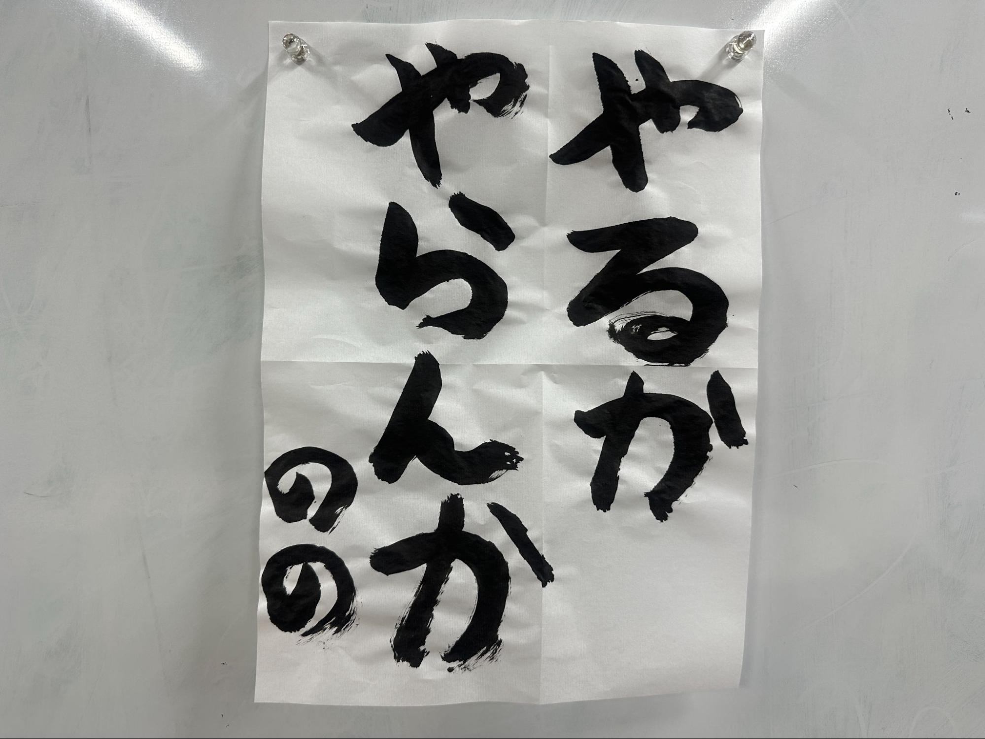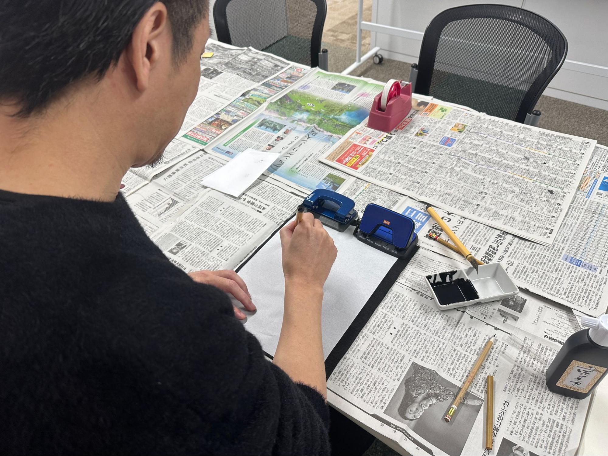 ほとんどのメンバーが久しぶりの書道です。日々の業務ではPCを使用するので、改まって文字を書くことが久しぶりのメンバーも。何度も漢字を確認しながら、緊張した様子で書いていました。背筋が伸び、集中力が高まるので、たまには丁寧に字を書く時間も良いですね。